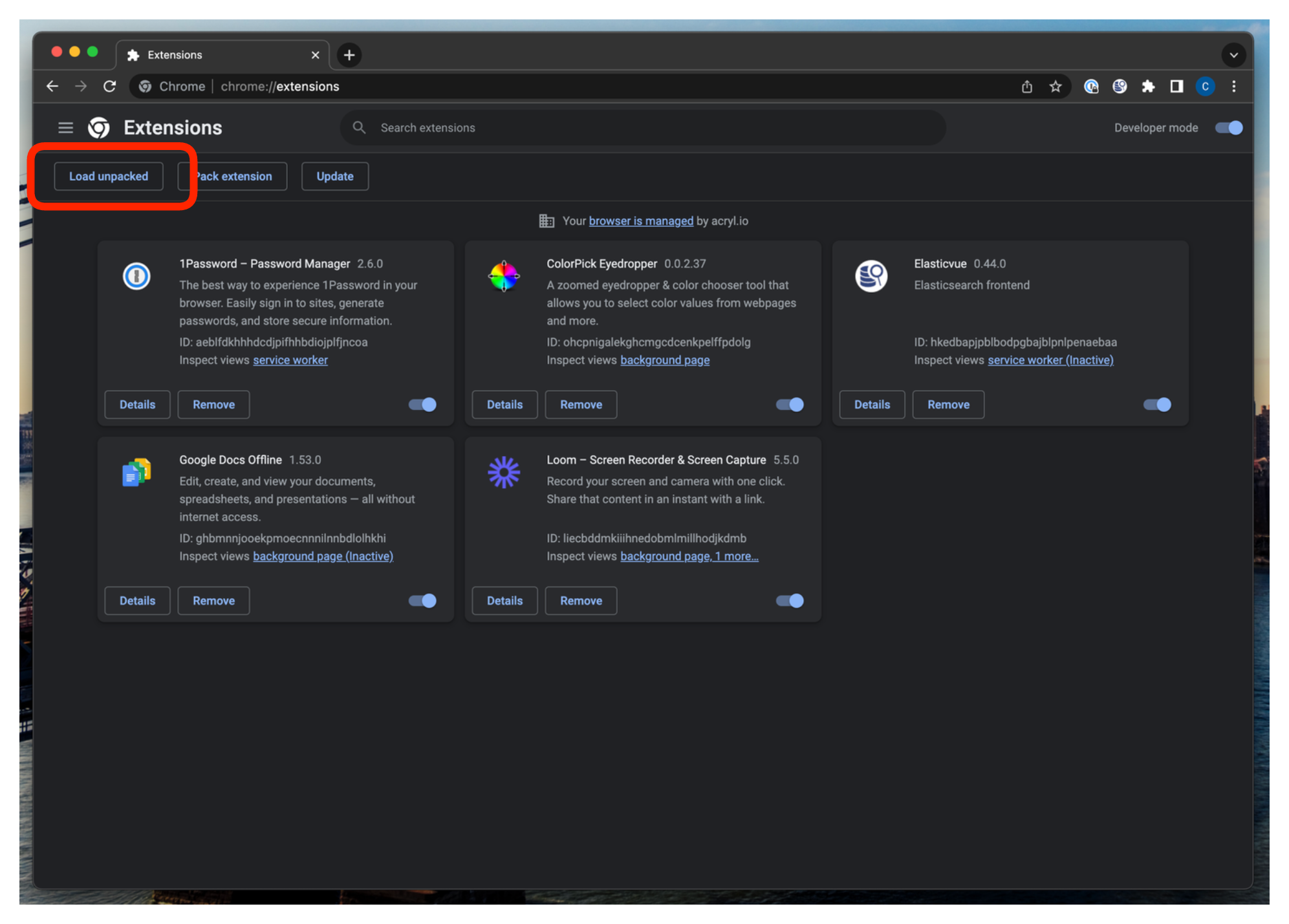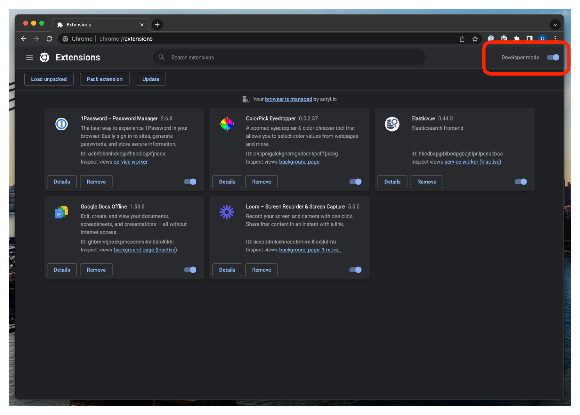 Enable developer mode by clicking the toggle on the top right of the page