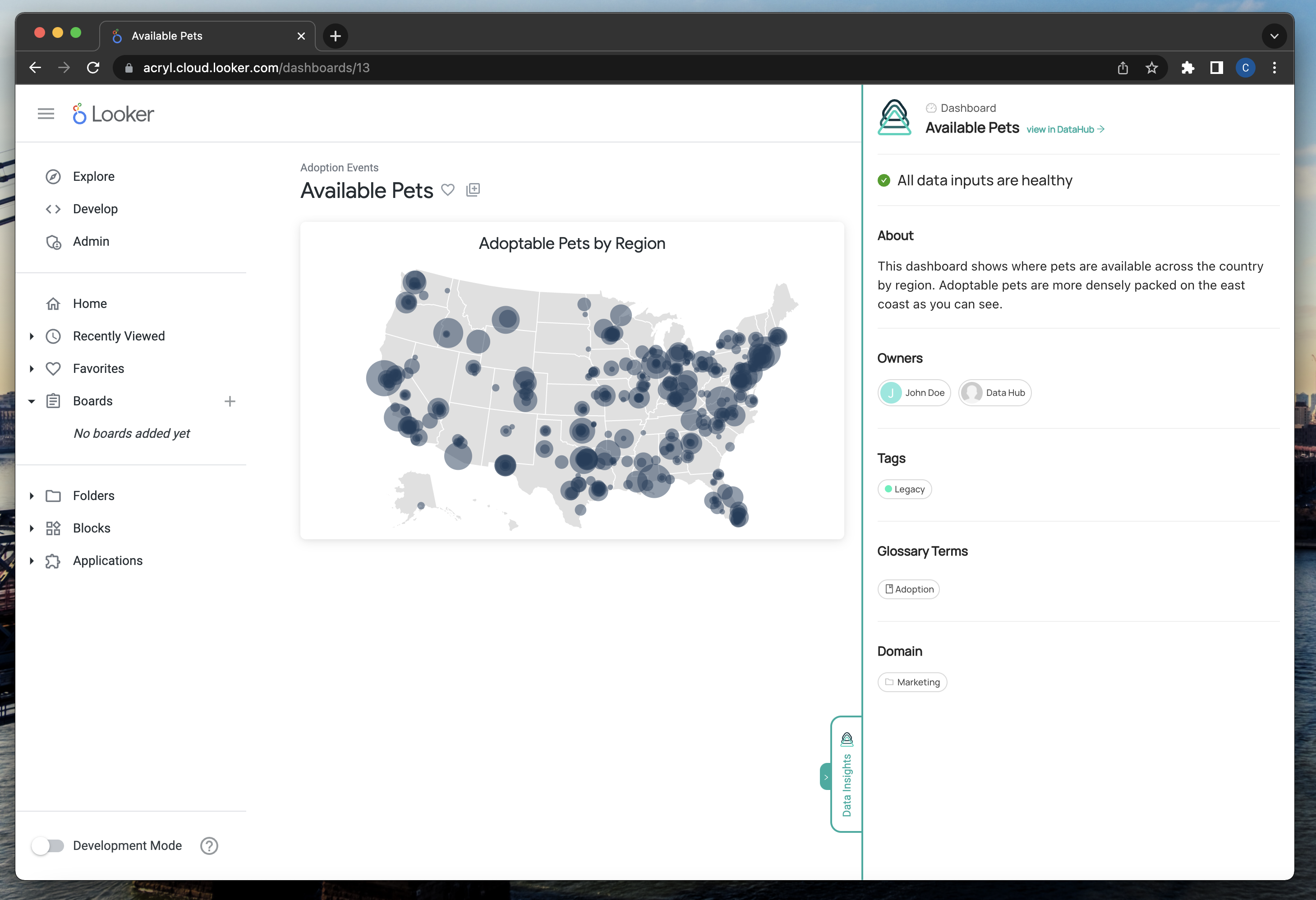 Navigate to a page where DataHub can provide insights on your data assets (Dashboards and Explores).